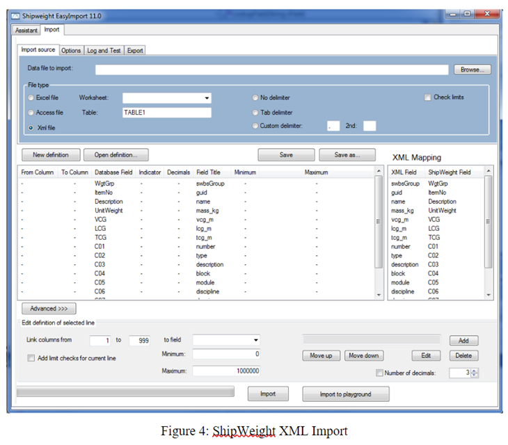 Direct access to the 3D model’s database requires the 3D tools to store the information in a database that is accessible externally from other programs. Having this type of access is not always the case as some tools use proprietary, pseudo-databases or store the data in files that are not accessible by other software. The disadvantage of this method includes requiring good knowledge of the database table structure, the data to be accessed, and the custom programming for the extraction of the data which becomes obsolete when the database structure or nature of the data formatting changes. Moreover, the weight engineer must have the appropriate level of permissions to access the 3D model’s database, which in some IT environments can be problematic. Finally, this strategy is also vulnerable to database changes resulting from design iterations and scenarios stored in the database, and design changes that will occur in the design cycle within the 3D tool; this may invalidate the method of data extraction. On the other hand, the advantage is that this constitutes a managed and faster way of importing, data both in regards to the actual import, but also in terms of the greatly reduced manual handling of the data to be imported.